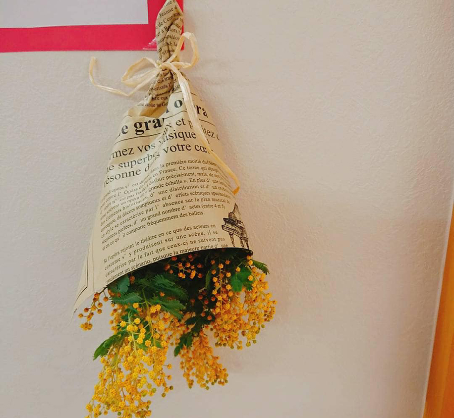 昨日摘んできた😊ミモザを使って、リースを作りました✨✨